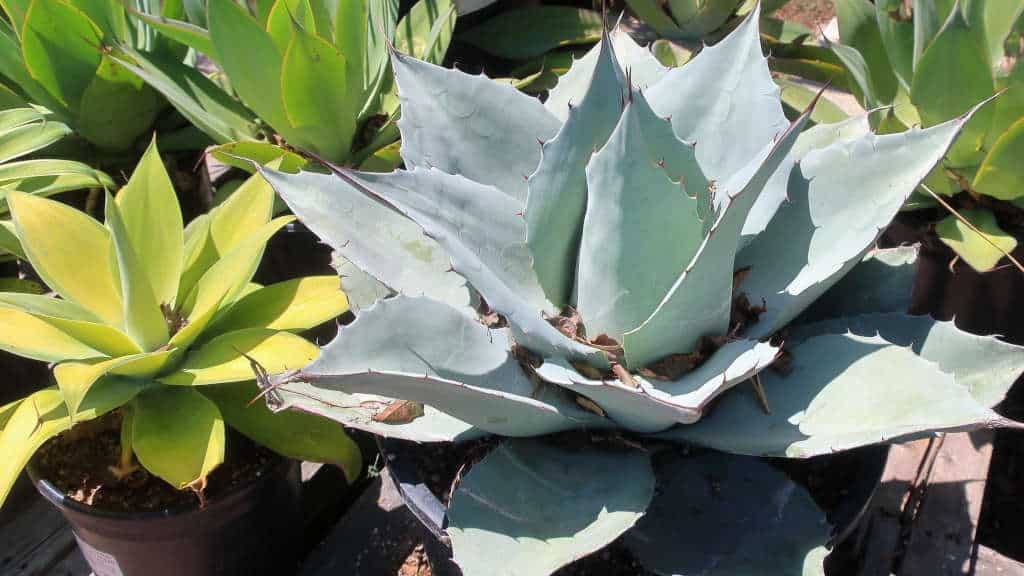 Alors, si vous constatez que votre agave n’est pas de la bonne couleur, regardez en premier lieu la terre pour voir si elle est trop arrosée ou si le sol n’est pas trop humide. Je vous conseille de regarder mon article sur la terre pour cactus et succulentes pour en savoir plus Vous pouvez aussi vérifier la taille du pot qui peut s’avérer un peu petit pour répondre aux besoin de votre agave ou votre succulente.