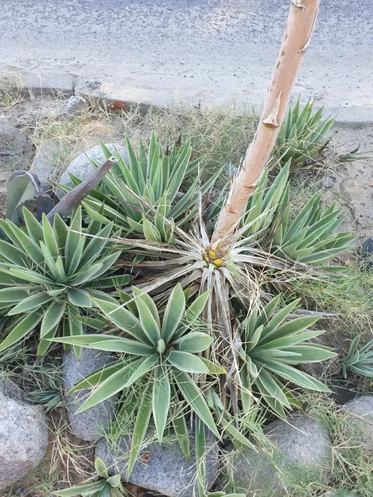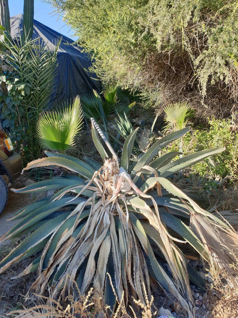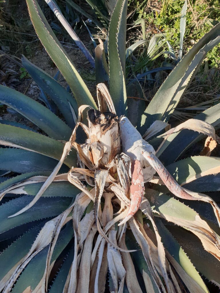 Comme nous l’avons répété dans cet article, l’agave va mourir après floraison. C’est une spécificité de cette plante. Pour reconnaître une agave en train de mourir après floraison, il faut chercher la hampe florale sèche en plein milieu de la plante. C’est caractéristique d’un agave post-floraison.